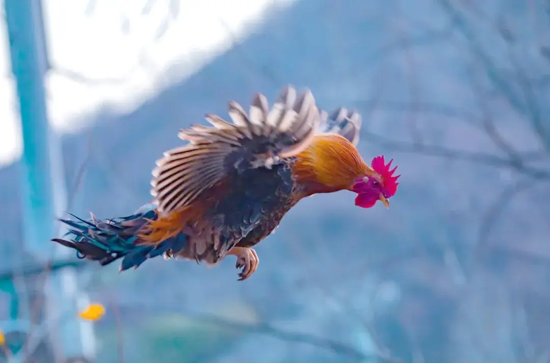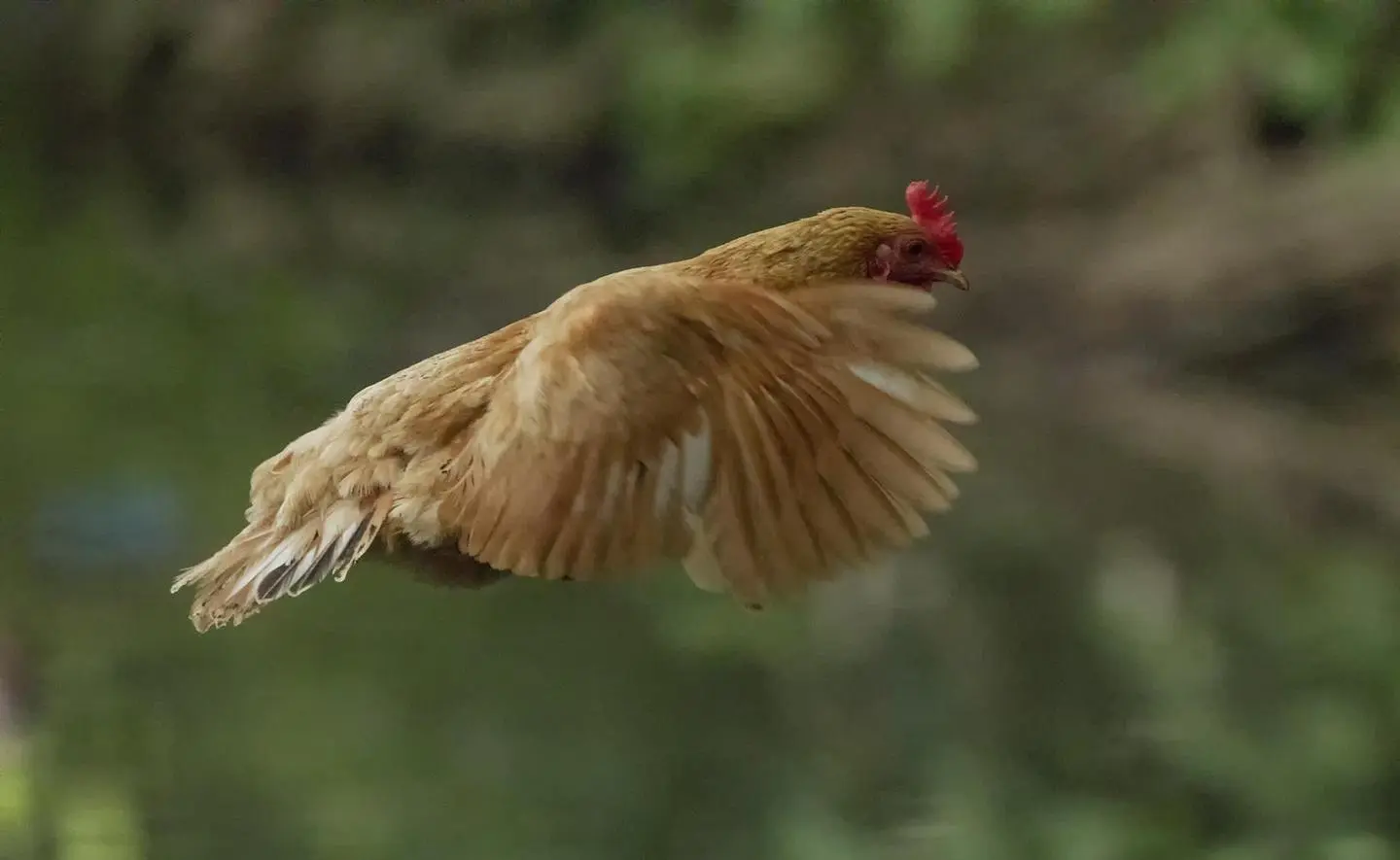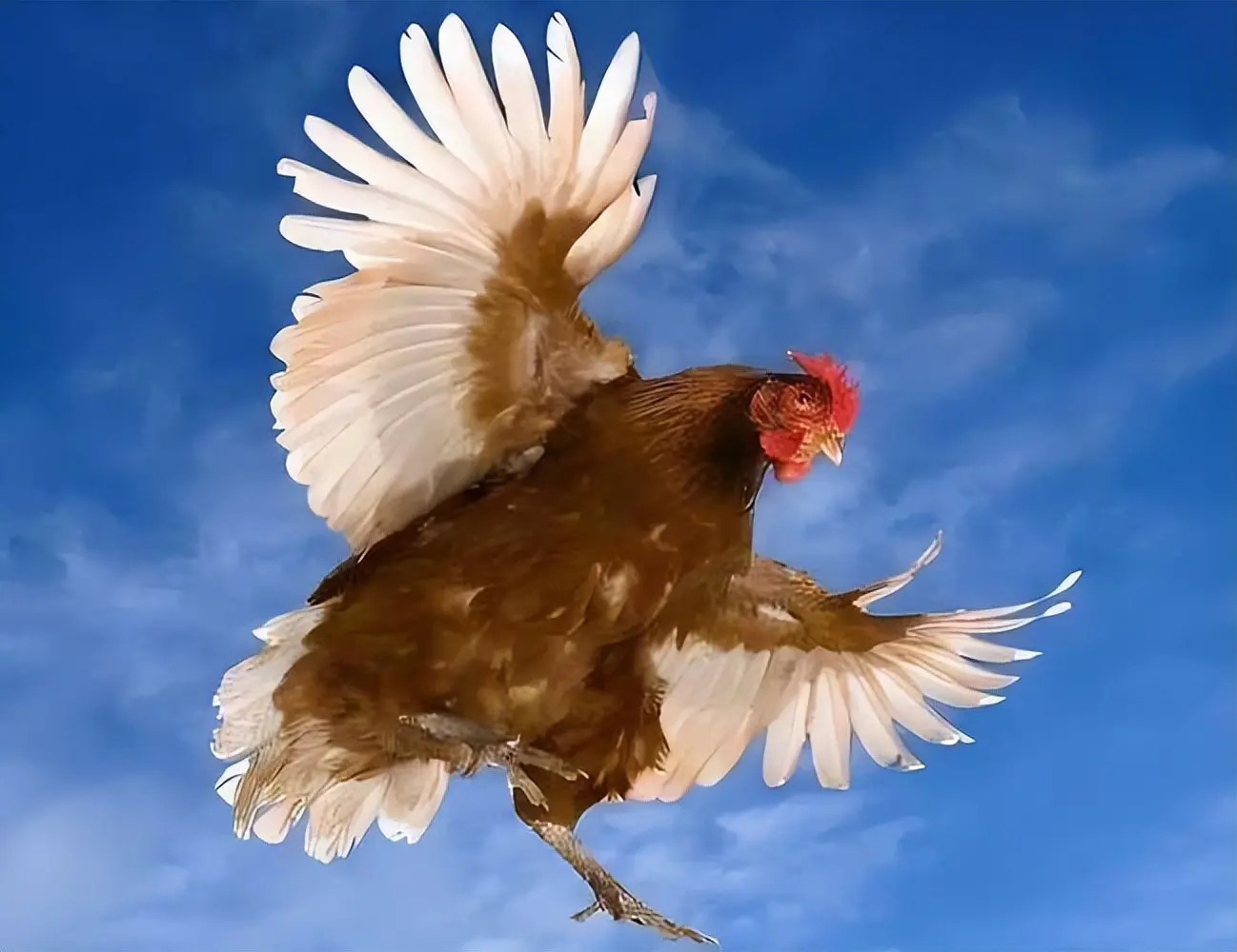 家鸡的祖先是红原鸡,一种生活在热带丛林里的鸟类。它们的主要技能是“爆发式起飞”,在受惊时能以近乎垂直的角度瞬间跃上树梢,最远滑翔距离能达到上百米。但它们的飞行高度有限,平时也就上个树、躲个天敌,从没想过要飞上万米高空。