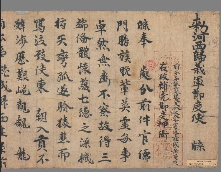 P.3805 《后唐同光三年(925)六月一日归义军前子弟宋员进改补充节度押衙牒》 (图源:《法国国家图书馆藏敦煌文献》上海古籍出版社)