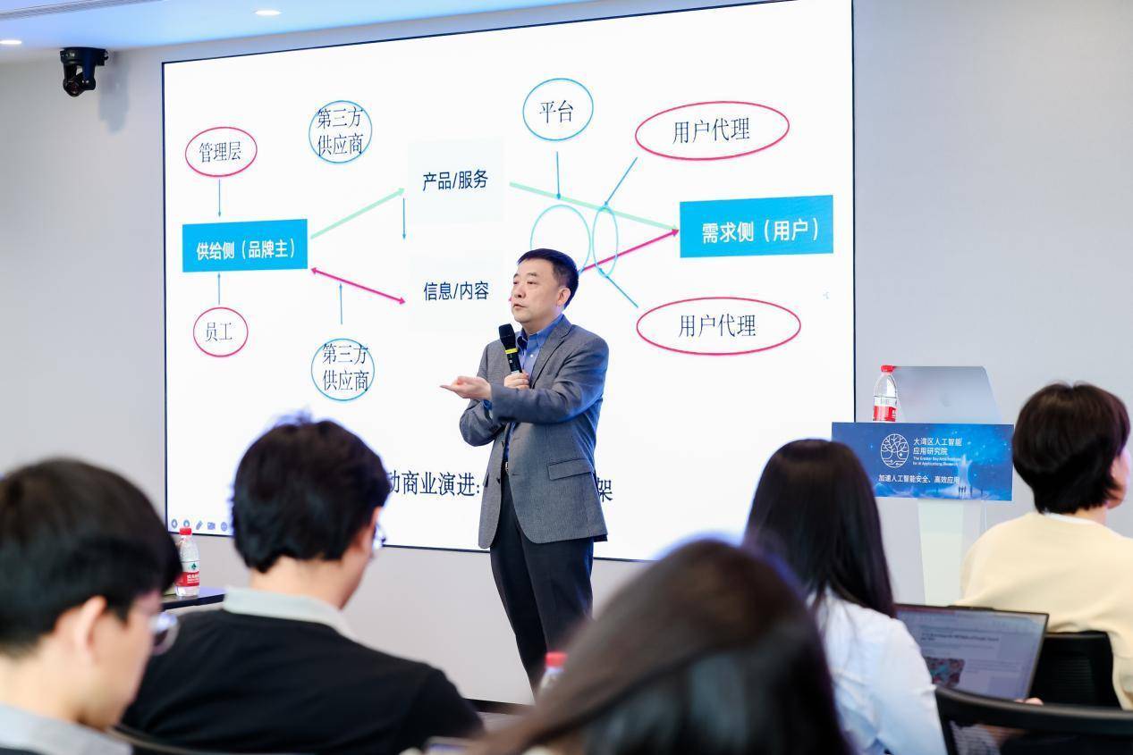 随后,上海纽约大学商学部主任、大湾区人工智能应用研究院合作专家陈宇新教授则以《AI驱动的商业新世代》为题,提出AI正深刻改变商业运行的基本结构。陈教授指出,AI带来的变化已不局限于某一环节的效率优化,而是正在重塑供给侧、平台与需求侧之间的连接关系,推动产品与服务交付、信息与内容分发、品牌触达与用户决策机制同步变化。